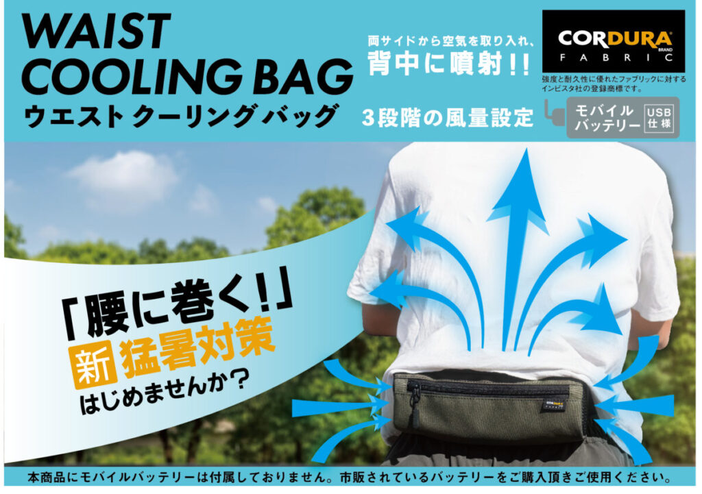 【好評の”ウエストクーリングバッグ”が2023年度も発売開始!】初回累計2万個販売。脱、うちわ宣言!手ぶらで快適“腰に巻く扇風機”。