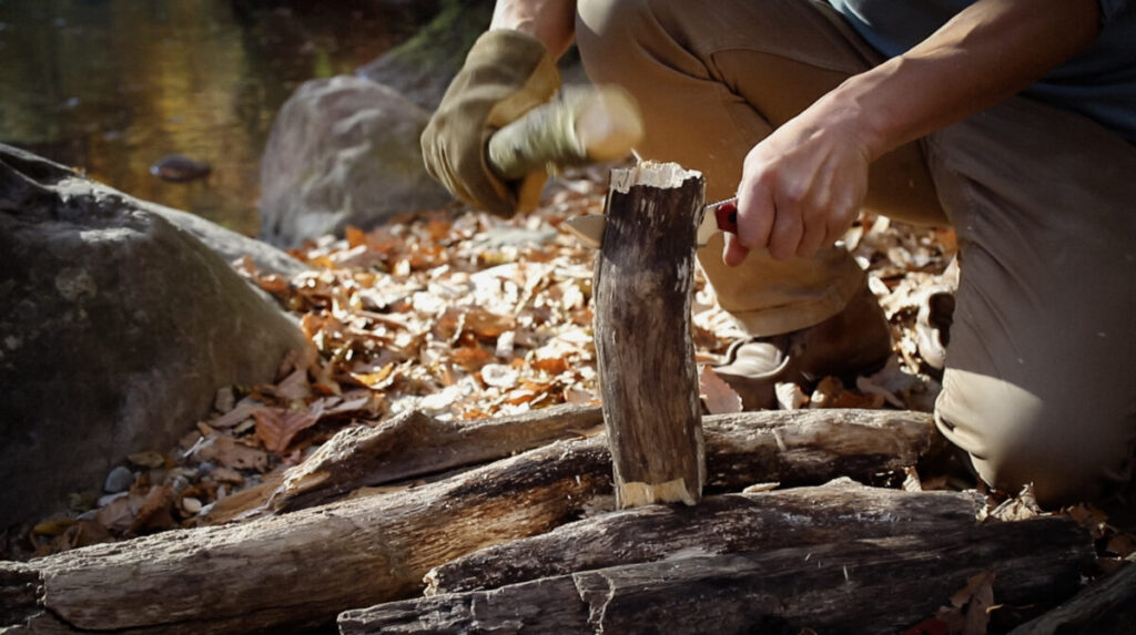 小型化した事で、バトニングをする時にハンドル領域まで叩く事になります。