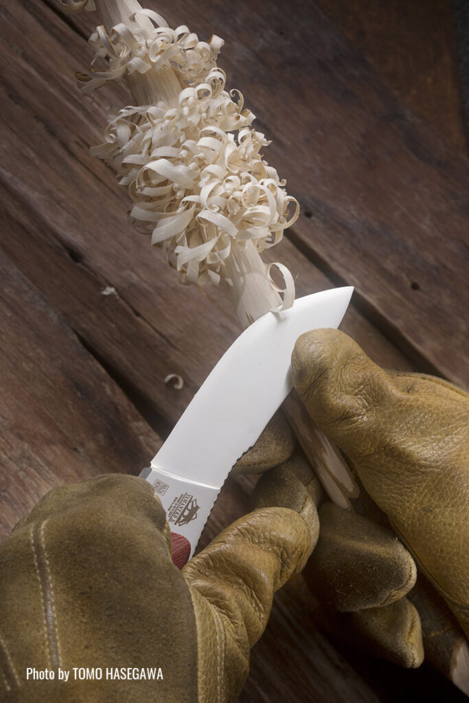 鋭い切れ味は、薄く繊細に木を削る事が可能。フェザースティック作りが、益々楽しくなります。