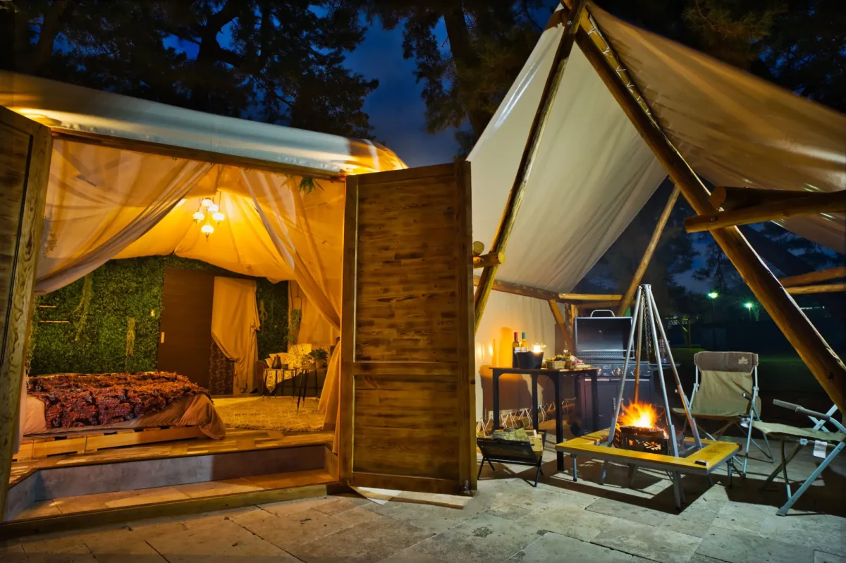 グランピングのゲルテント内は冷暖房完備なので、寒い冬でも安心して過ごせます。