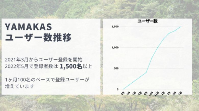 山林シェアリングサービス「YAMAKAS(ヤマカス)」において、キャンパーユーザー数が2022/05/22現在で1,500名を突破