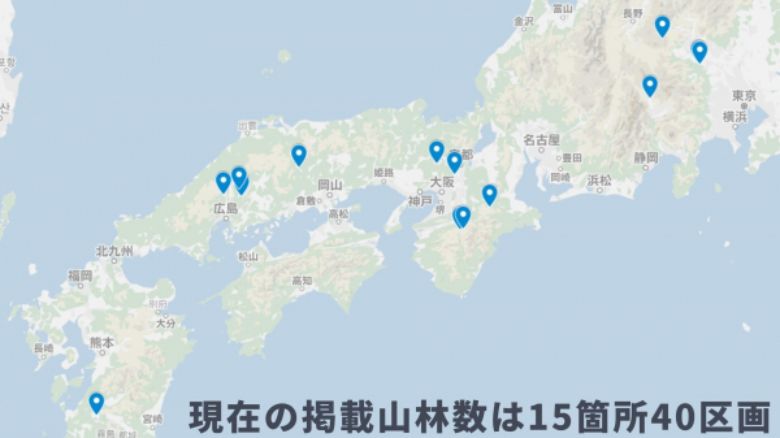 特に関東・愛知・関西・福岡近郊のユーザーが多数登録しているため、該当地域に山林を保有している方は問い合わせて欲しい。