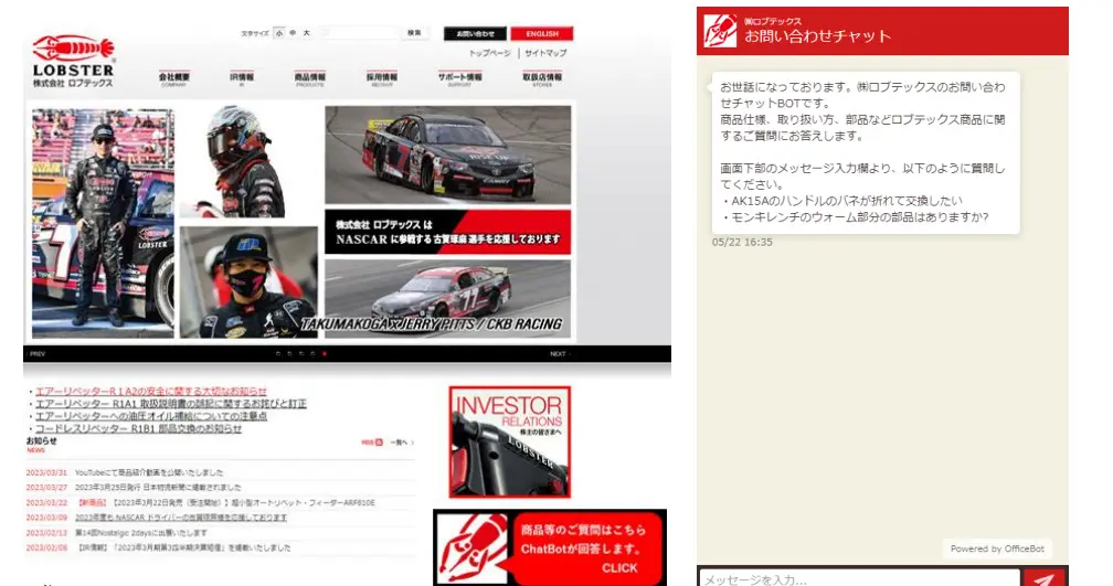 プロも愛用するロブスター工具 公式サイトからいつでも問い合わせが可能に