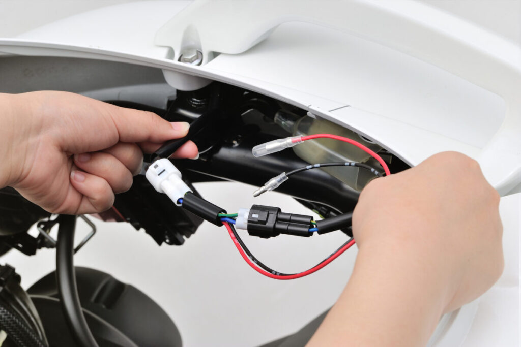 MotoMegane|バイクマガジンカプラーONで電源取り出し可能! 「電源取り出しハーネス」シグナスX,Vストローム250,GSX-R125/S125用