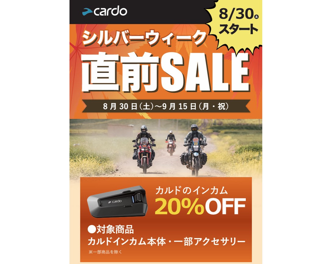 バイクニュース 速報Cardo製品が今だけ20%OFF! シルバーウィーク直前SALE開催中
