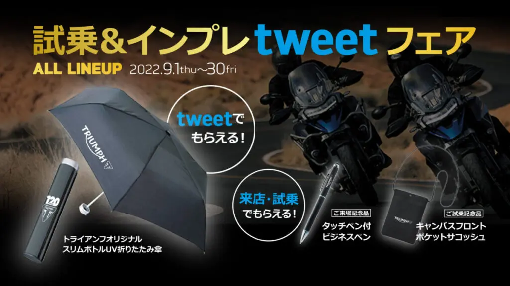 MotoMegane|バイクマガジントライアンフ数量限定プレゼントがもらえる「ALL LINEUP 試乗& インプレ tweet フェア」開催