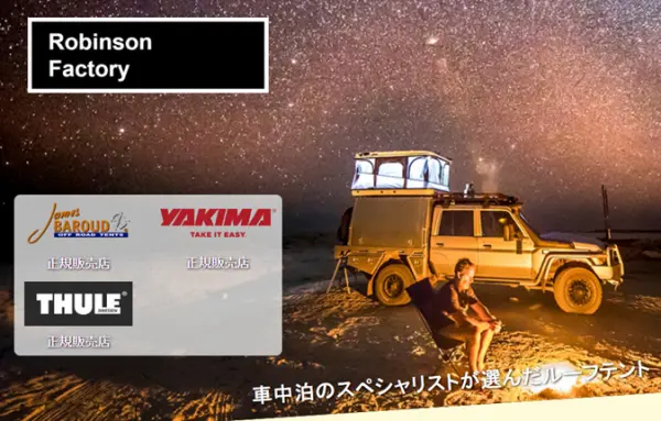 キャンピングカー株式会社は、ルーフテント専門店「Robinson Factory」を千葉県市...