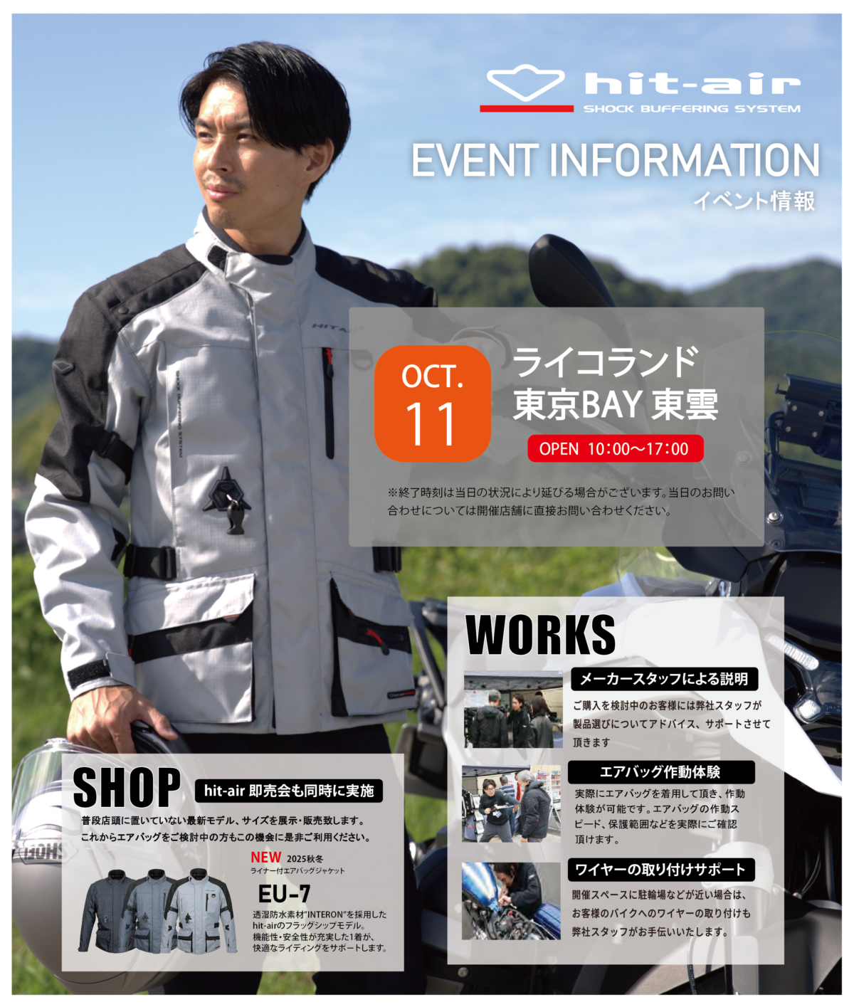 バイクニュース 速報東京ライダー必見!着るエアバッグ「hit-air」の体感&展示即売会が10/11にライコランド東雲で開催