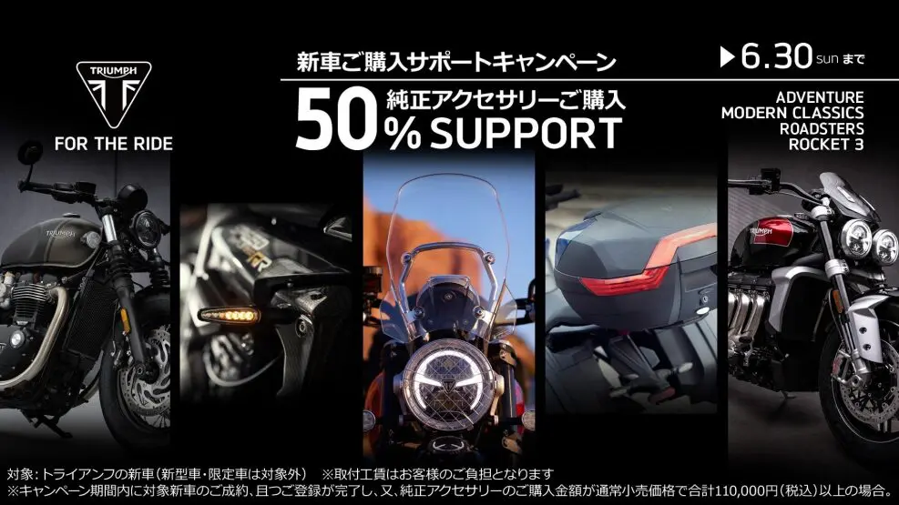 新車を買うならいま! トライアンフが購入サポートキャンペーン開催中