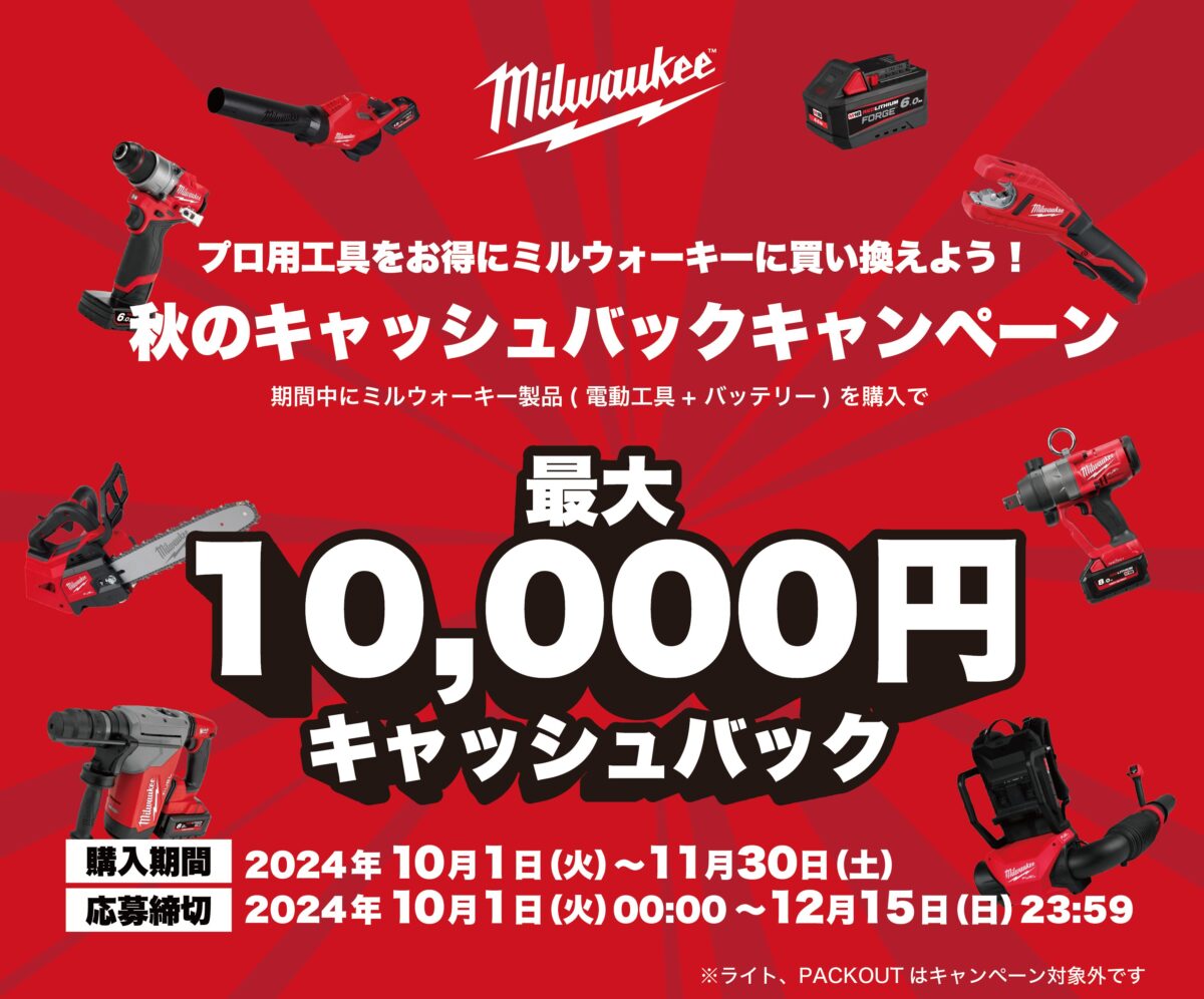ミルウォーキーツール・ジャパン合同会社は、「秋のキャッシュバックキャンペーン... -