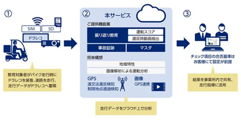 バイク用ドラレコの記録から安全走行スコア等を図るサービス開始