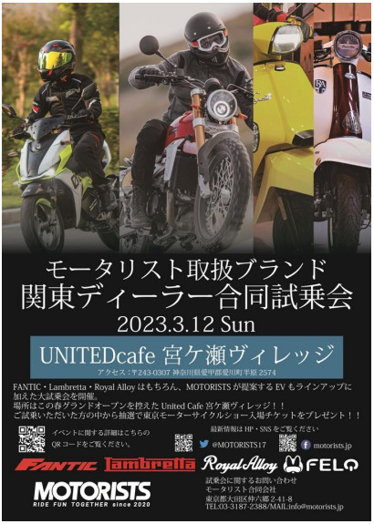MotoMegane|バイクマガジンランブレッタやFANTICに乗れる モータリスト 試乗イベントを開催