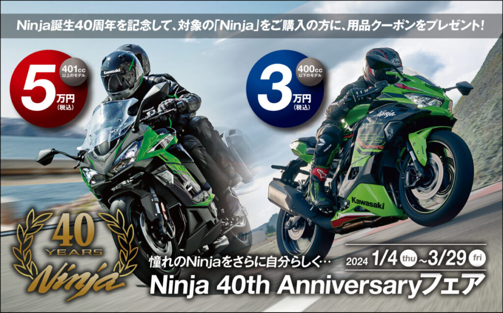 MotoMegane|バイクマガジン用品クーポンもらえる! カワサキが「Ninja 40th Anniversary フェア」開催