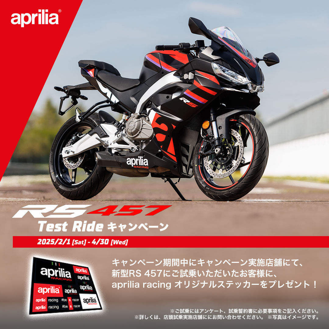 アプリリア RS 457を試乗するチャンス! 対象店舗にてキャンペーン実施中
