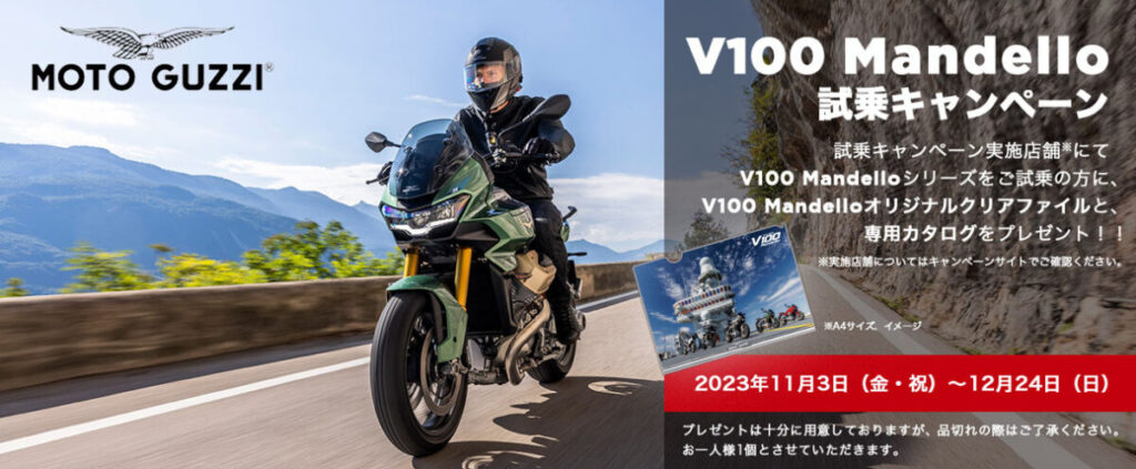 快適性を追求したV100 Mandelloのグッズ&カタログが貰える!試乗キャンペーン