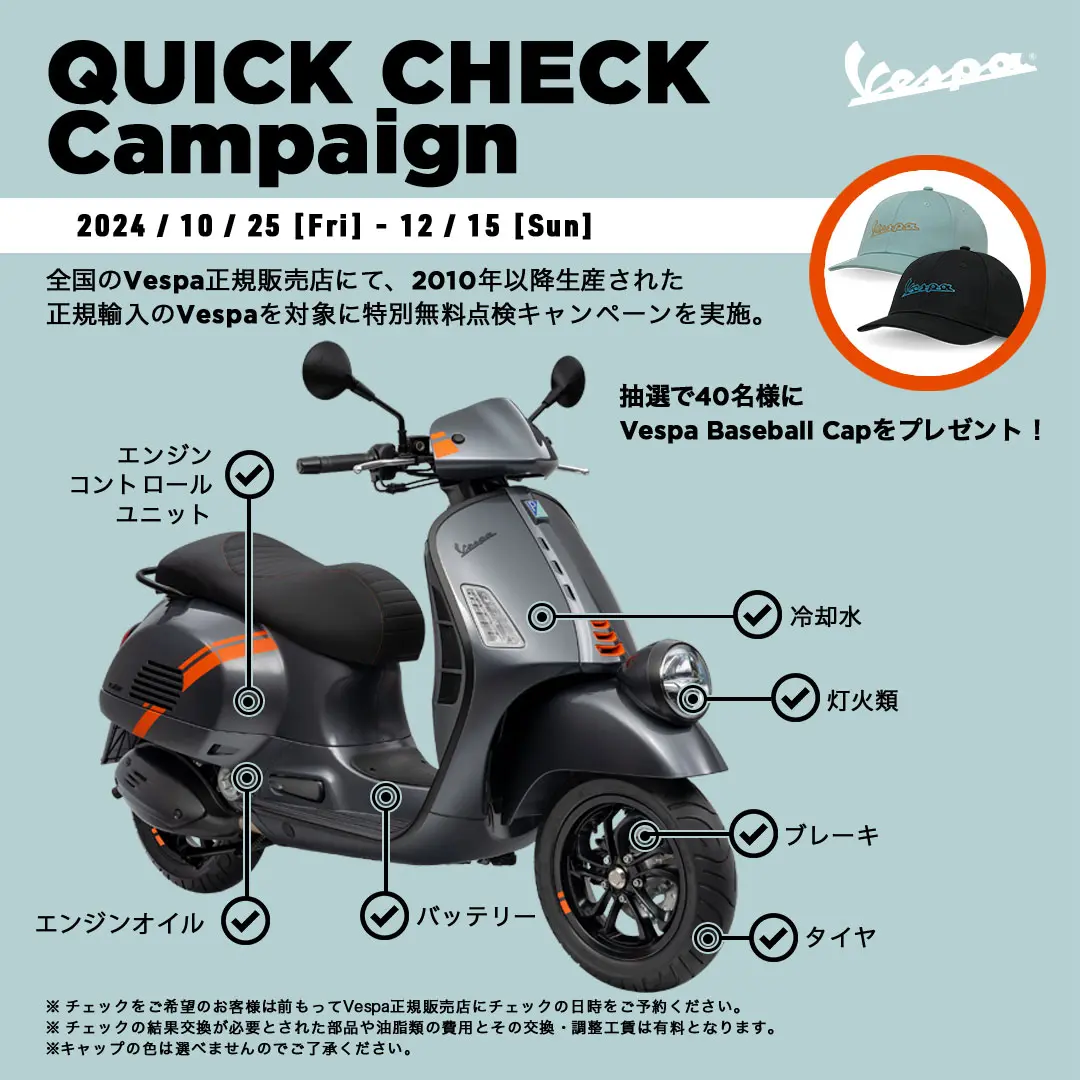 MotoMegane|バイクマガジン無料で点検してくれる!「ベスパ クイックチェックキャンペーン 2024」実施